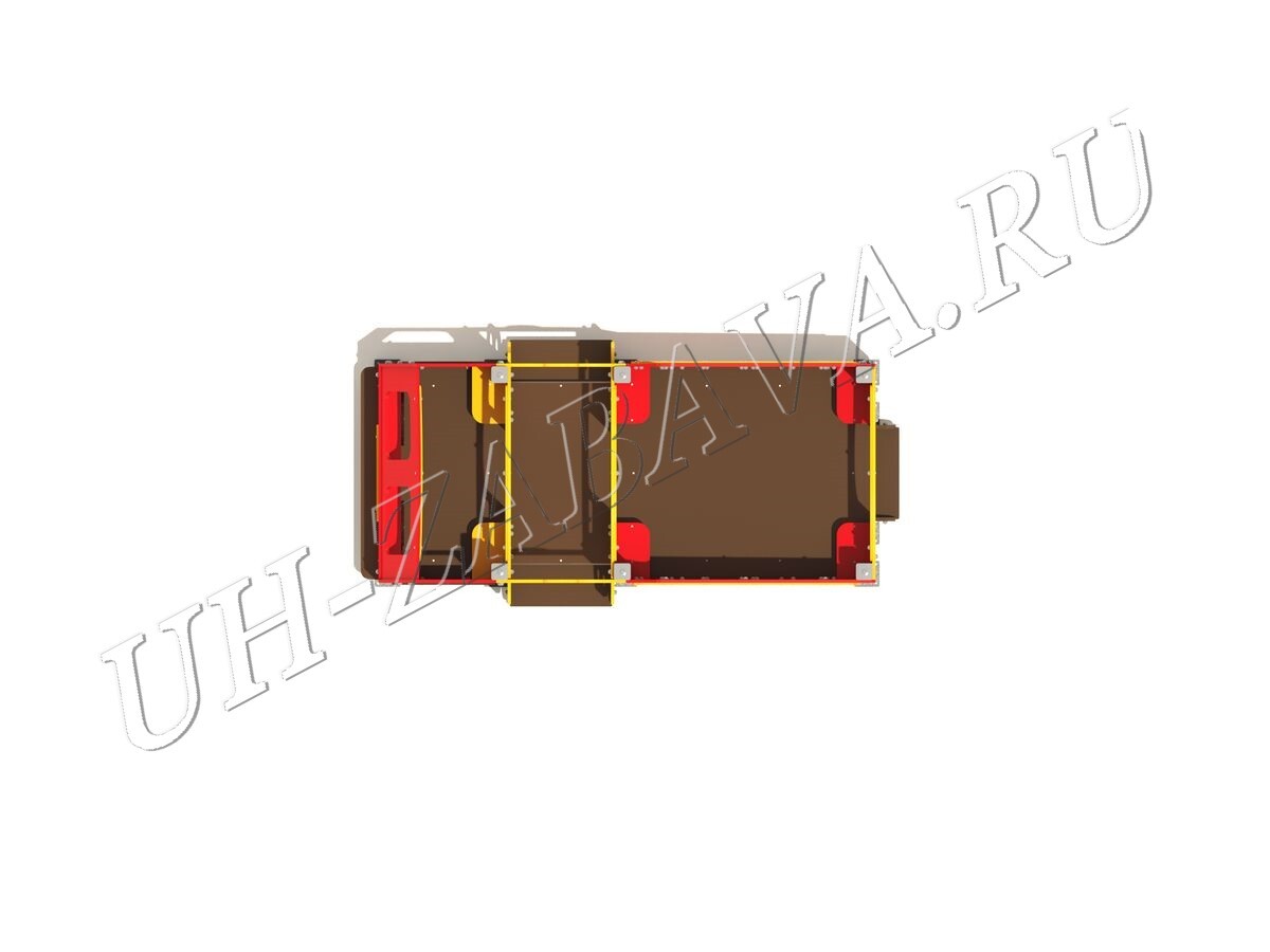 - Площадка изготовлена из высококачественной ламинированной березовой фанеры повышенной влагостойкости ФСФ, толщиной 21 мм, с нанесенной на поверхность сеткой, обеспечивающей надежное сцепление обуви ребенка и препятствующей скольжению.