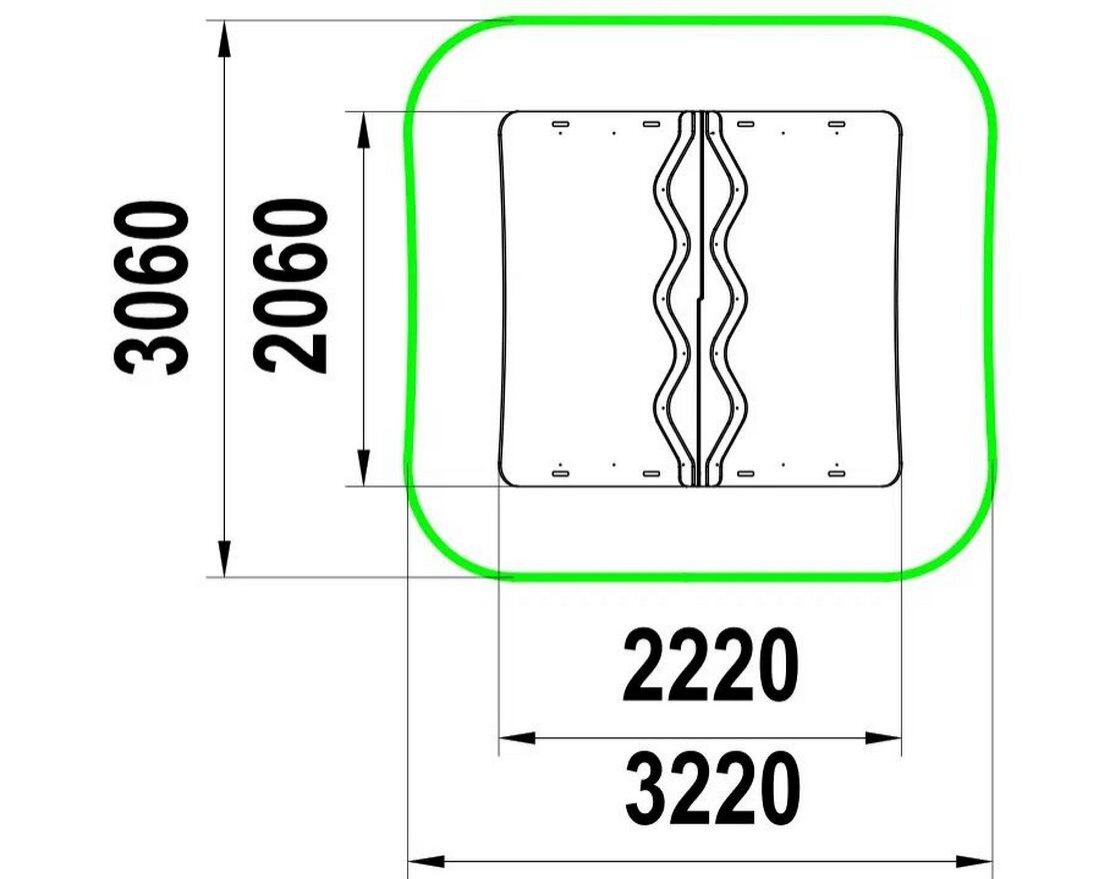 - Зона безопасности: 3220x3060 мм