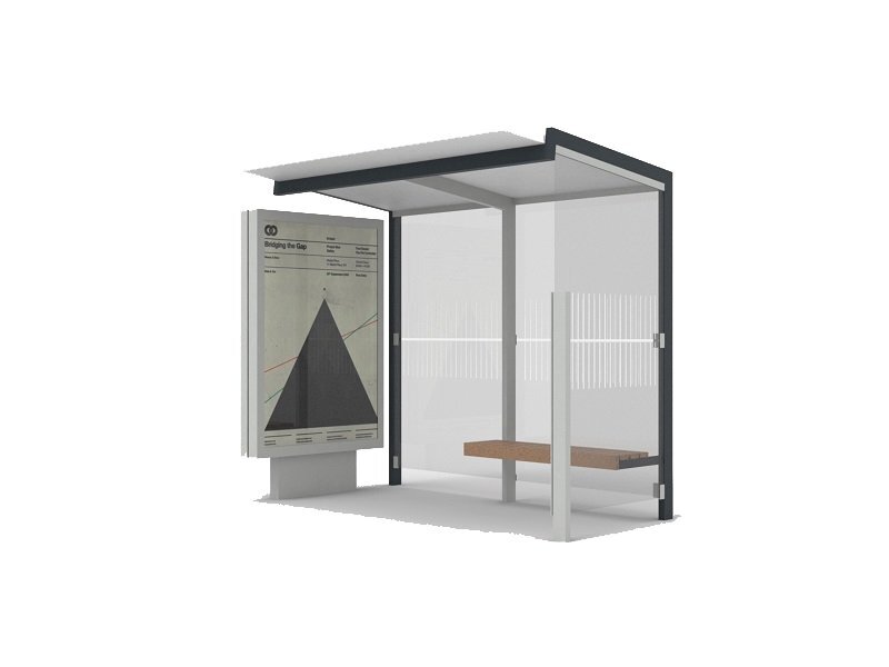 Серия навесов Geomere с оптимизированным решением функциональных компонентов. Простая и эффективная модульная система с опорами в задней стенке. Это позволяет создавать конструкции без боковых стенок, что особенно удобно для применения в узком пространстве. Интегрированная элегантная скамья с деревянными ламелями гармонично дополняет комплект. Интересным является графическое решение стеклянных панелей на крыше и стенках.