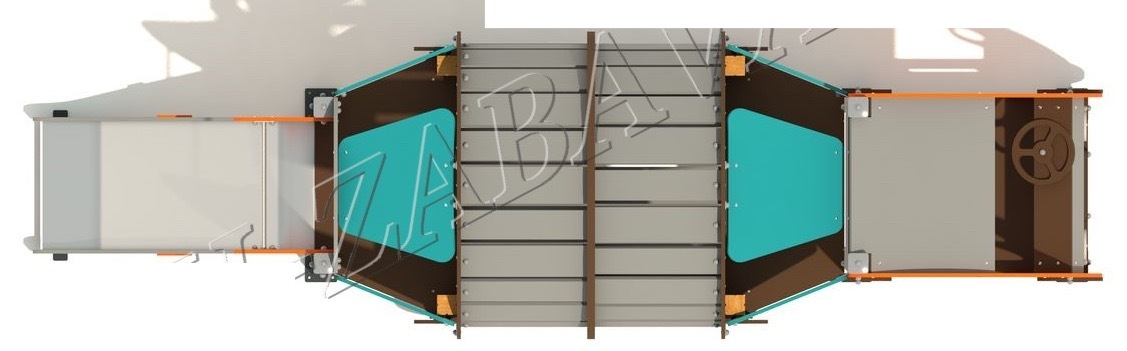 - Размер безопасной игровой зоны комплекса (зоны приземления) - не менее 1.5 м до ближайшего препятствия от вертикальной проекции любой точки конструкции на зону приземления.