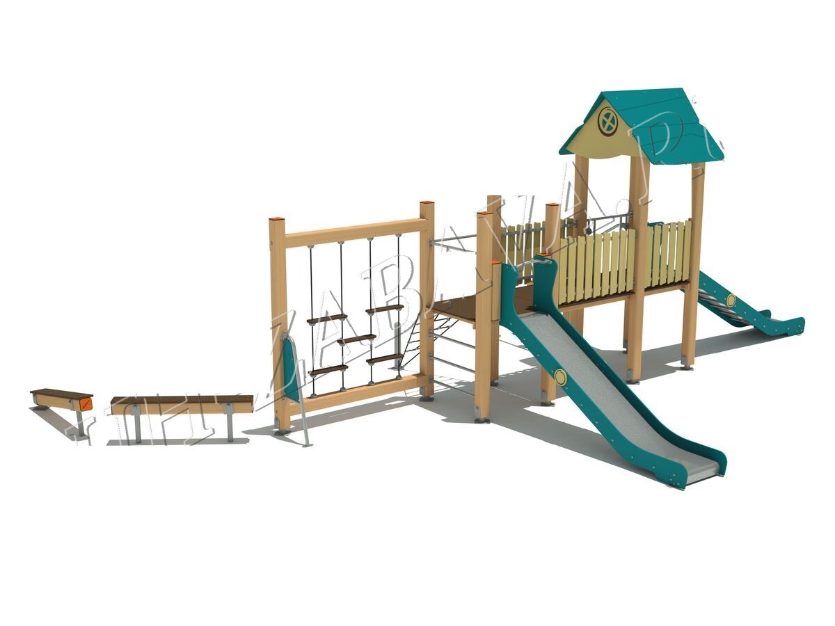 - Размер безопасной игровой зоны комплекса (зоны приземления) - не менее 1.5 м до ближайшего препятствия от вертикальной проекции любой точки конструкции на зону приземления.