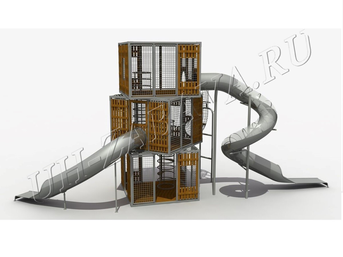 - Детский игровой, многофункциональный комплекс. Антивандальное исполнение конструкции предназначено для интенсивной эксплуатации.