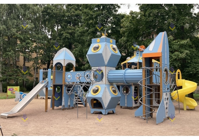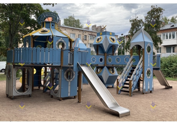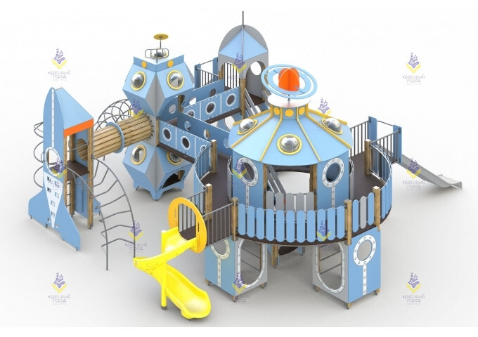 Огромный игровой комплекс МКС даст почувствовать ребёнку себя настоящим капитаном или управляющим космического корабля. В комплексе несколько видов рукоходов, горок из нержавеющей стали и винтовых пластиковых, шесты спирали, туннельные переходы и многое другое. Нестандартное круговое строение башни приведёт детишек в восторг, здесь они смогут общаться с друзьями, играть, веселиться и развивать любовь к физической культуре, благодаря обычным играм на детской площадке.