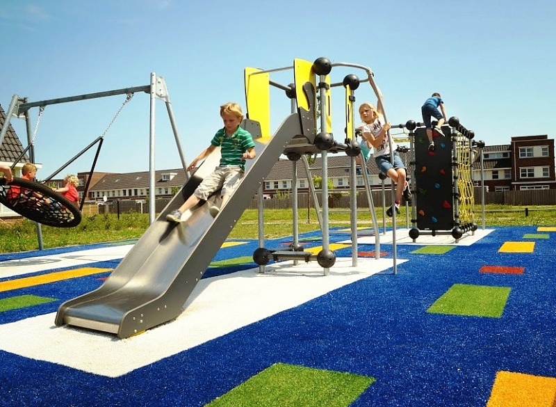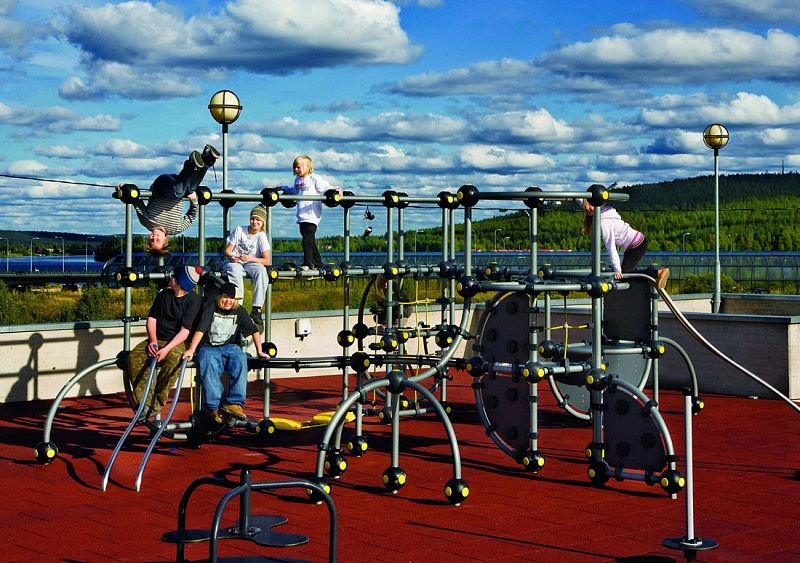 Игровой комплекс для детской площадки «Небоскреб» выполнен из металла и рассчитан на детей от 1 года.