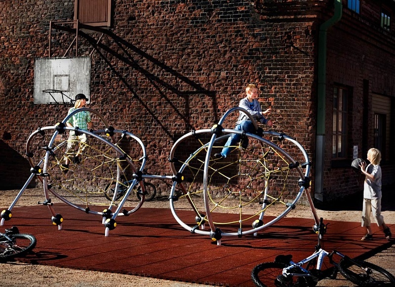 Материалы, из которых изготовлен комплекс, предназначены для применения на детских площадках, устойчивы к сложным погодным условиям, истиранию, действию ультрафиолета. Все стальные детали конструкции - с гальваническим покрытием. Канаты, используемые в элементах комплекса, изготовлены из перлона (perlon) с усиленным стальным сердечником (диаметр каната не менее 16 мм).