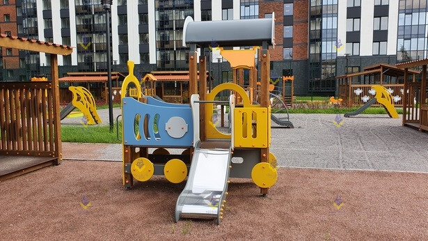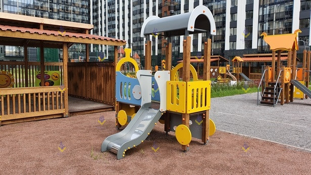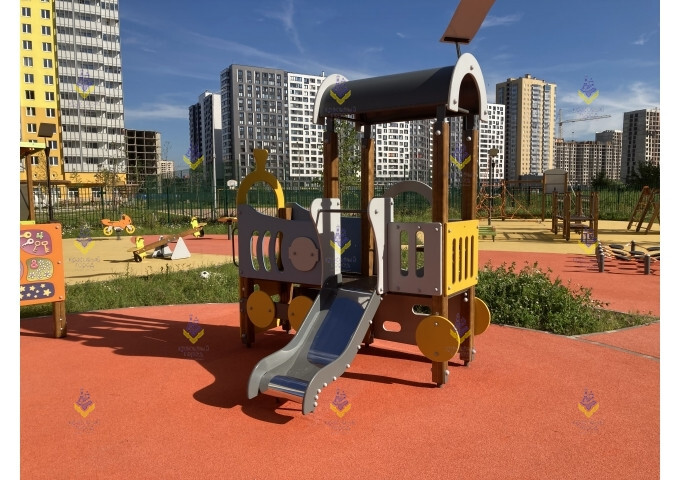 Игровой комплекс «Паровозик тип-2» имеет интересное тематическое оформление, которое обязательно оценят дети. Здесь каждый ребенок может представить себя машинистом, проводником поезда или пассажиром, отправляющимся в путешествие. Для активных игр здесь также имеется горка высотой 650 мм, подняться на которой можно по обычной лестнице или по стене с выступами (мини-скалодром). Все элементы безопасны и отвечают стандартам качества.