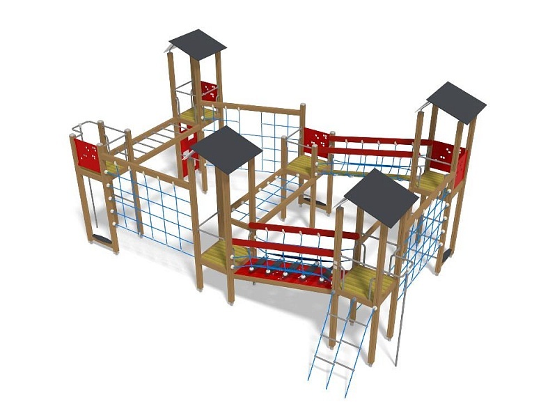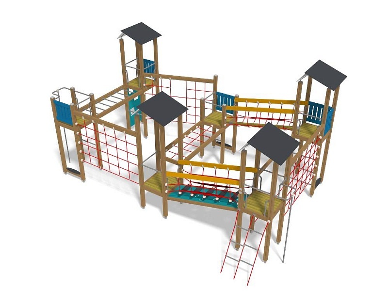 Многофункциональный игровой комплекс для детской площадки «Риф». Габаритные размеры с учетом зоны безопасности не менее 11160х8400х3700 мм. Игровой комплекс доступен 5 цветовых вариантах. Возможна установка в грунт и на твердую поверхность.