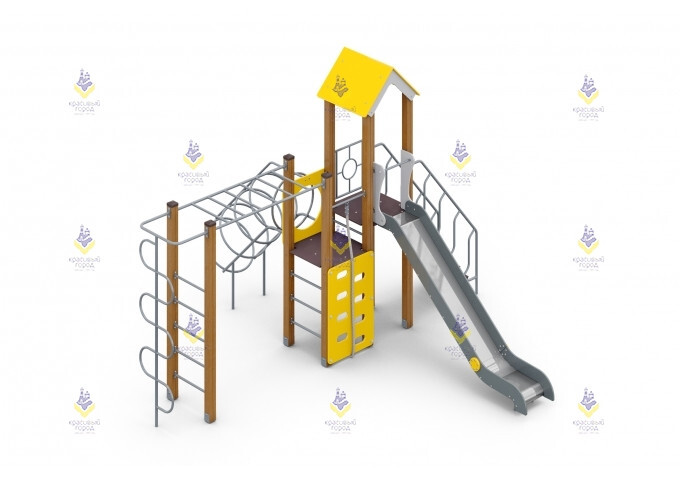 Игровой комплекс «Спорт» - это небольшая, но функциональная детская площадка, где дети смогут не только играть, но и заниматься спортом. Оборудование включает в себя горку из нержавеющей стали (h-1500), лестницы, рукоход, стену с выступами и канатом, вертикальную змейку и трубу для лазания.