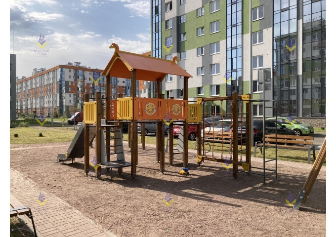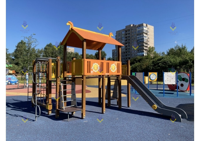 Игровой комплекс «Витязь» разработан для детей в возрасте от 5 до 12 лет. Детская площадка включает в себя большую башню с крытой площадкой для игр, где детям будет комфортно даже во время дождя. Подняться на площадку можно по обычной лестнице, рукоходу, вертикальной змейке или канатной сетке, а спуститься – скатившись с металлической горки (h-1200). Все элементы комплекса безопасны и создают комфортное пространство для детей и их активного отдыха. Оборудование станет прекрасным дополнением игровой зоны на территории двора, школы, стадиона, городского парка или сквера.