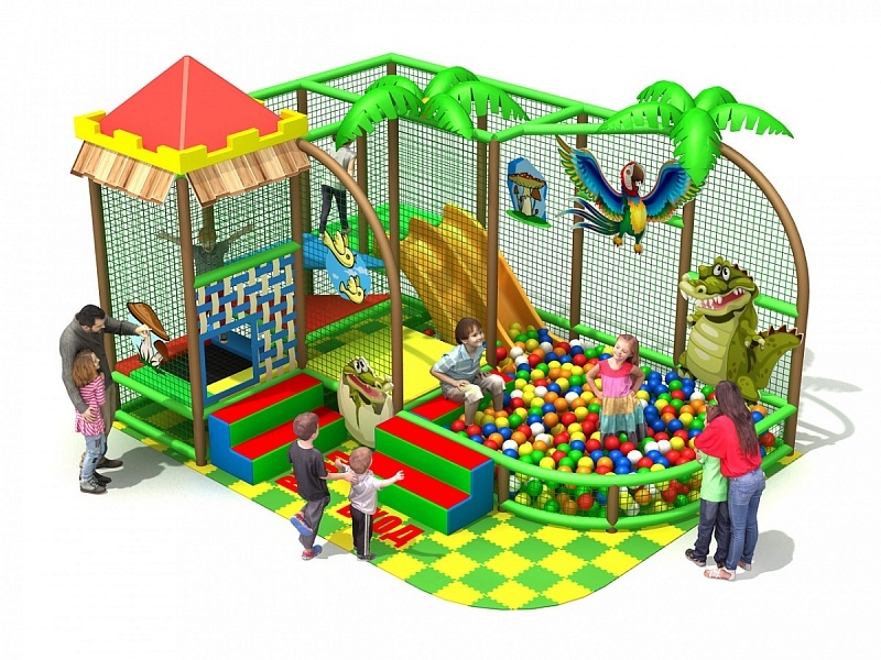 Детский игровой лабиринт занимает площадь 18,7 кв.м и оформлен в тематике тропиков.