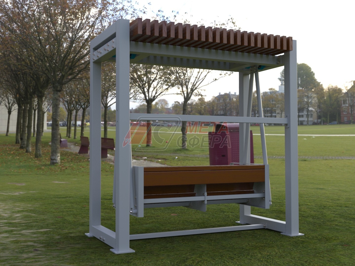 Скамья на подвесах может использоваться при оформлении парков, общественных зон, современных городских пространств. Функциональность конструкции создаст не только комфортную зону отдыха для горожан, но и станет креативными арт-элементом городской среды и преобразит любое пространство.