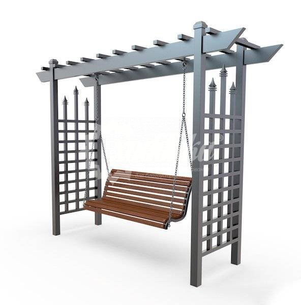 Сиденье и спинка: Брус из хвойных пород древесины. Покрытие - атмосферостойкая лессирующая акриловая пропитка с лаком. Стандартные цвета: Палисандр, Махагон, Тик.