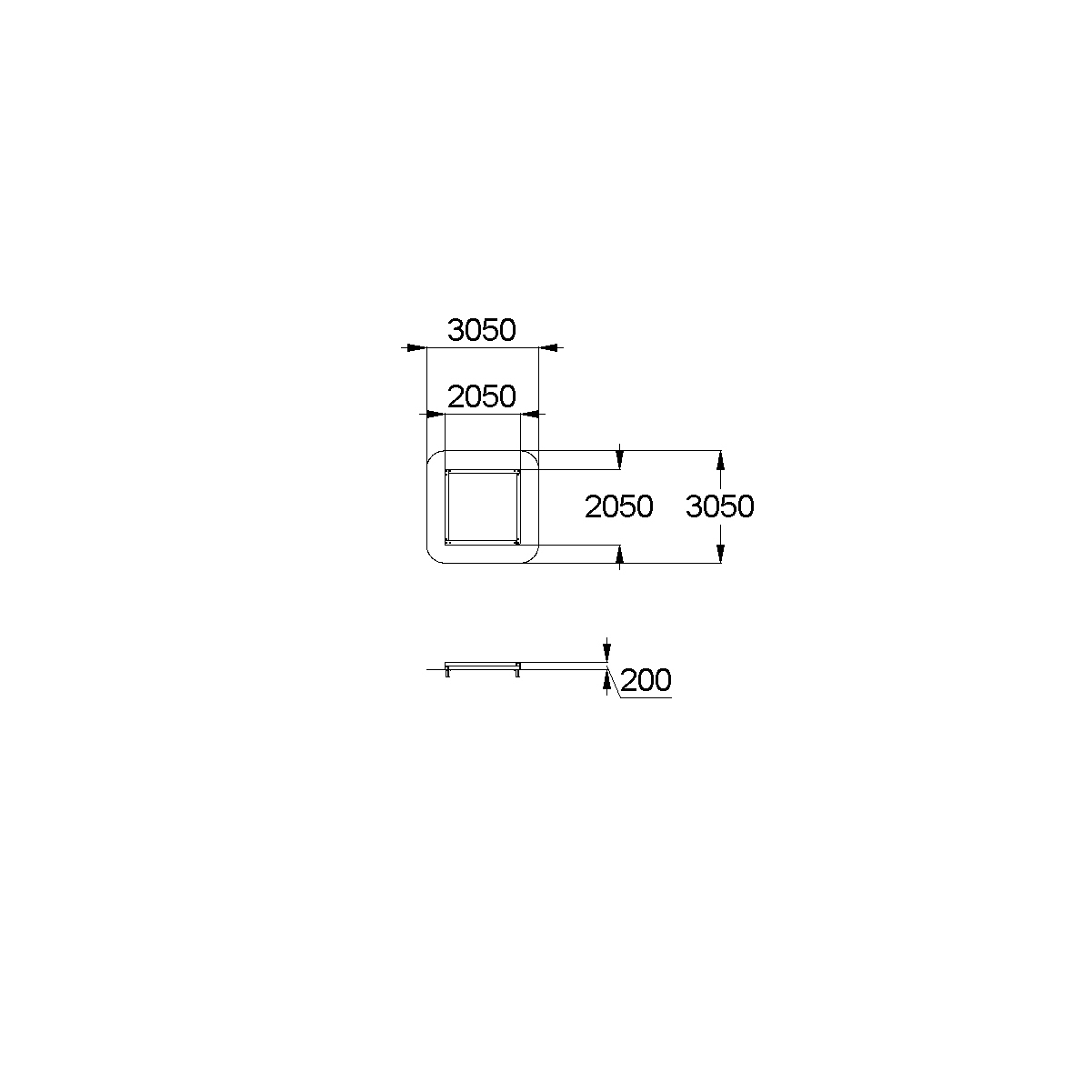 - Габаритные размеры: 2050x2050x200 мм