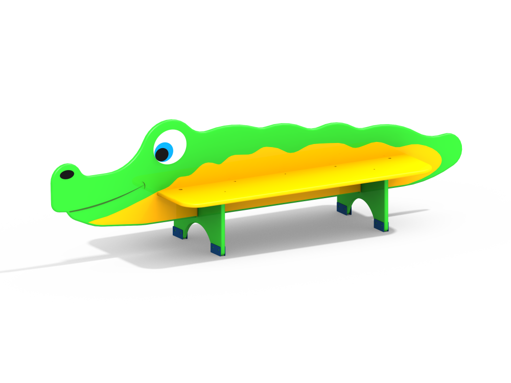 Скамейка в виде крокодила должна представлять собой устойчивую конструкцию, предназначенную для отдыха и состоять из сидений, спинки, опор, установленных на металлических подпятниках. Подпятники в количестве не мене 4-х штук должны быть выполнены из металлической трубы диаметром не менее 26 мм и листового металла толщиной не менее 4 мм. Спинка должна быть выполнена в виде крокодила с художественным оформлением, с двух сторон от спинки должны быть расположены сидения, поперек сидений расположены опоры. Спинка и сиденья должны крепиться в пазы опор. Сиденье, спинка, опоры должны быть выполнены из влагостойкой фанеры толщиной не менее 21 мм.