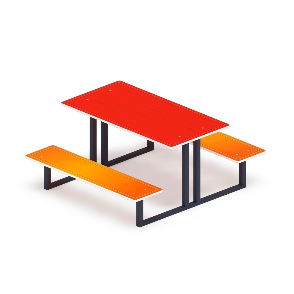Столик детский МФ 31.01.05-01 - большой прямоугольный стол со столешницей 1,2м х 0,62м и двумя скамейками, жестко установленными на металлический каркас. Отлично подходит для детских садов - дети могут вместе играть за ним, или заниматься творчеством.