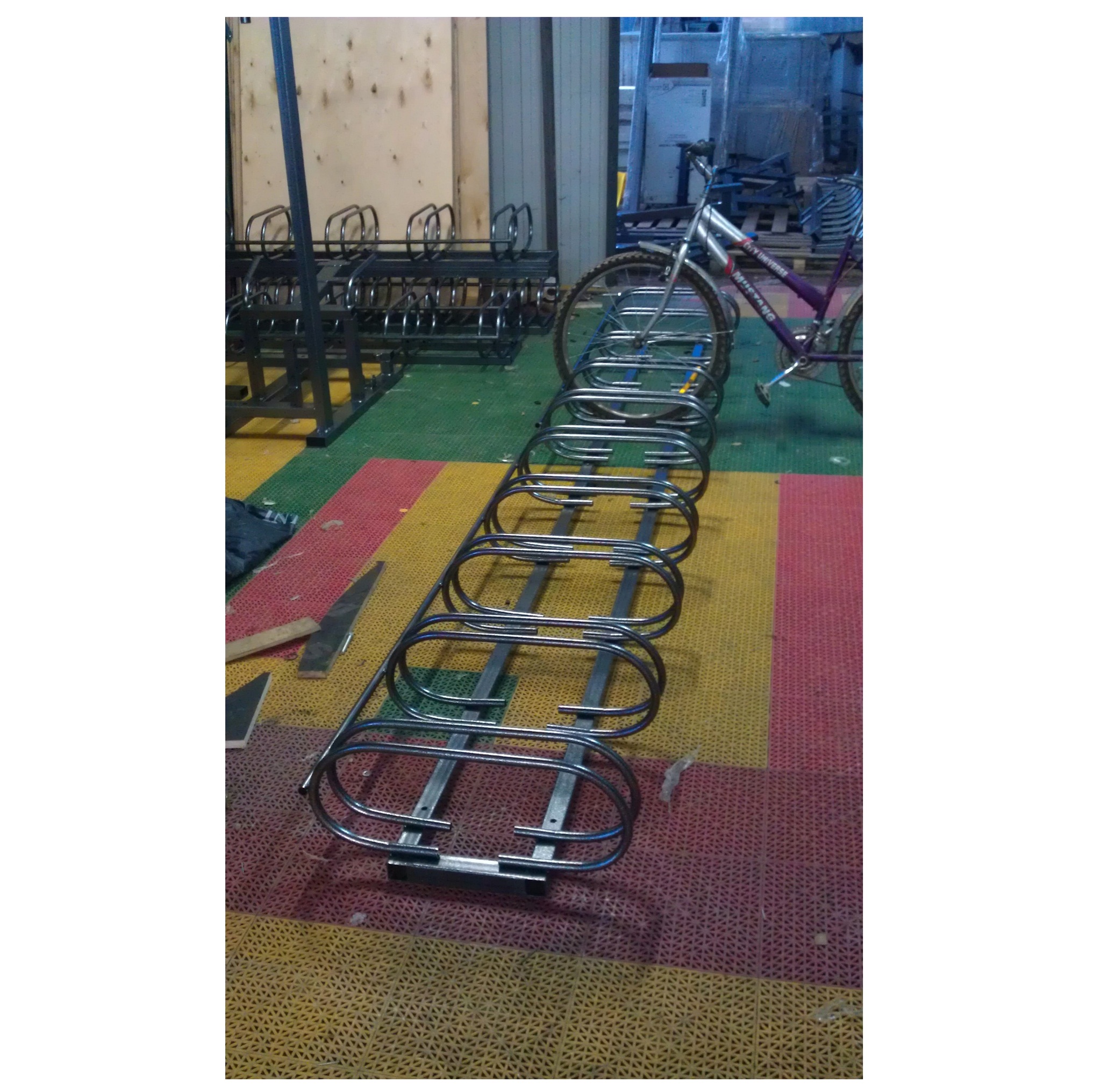 Сталь общего назначения, полимерно-порошковое покрытие стойкое к атмосферным условиям. Цвет покрытия по желанию заказчика из рабочей палитры завода. Возможно изготовление этой модели парковок на любое количество парковочных мест. Стоимость велопарковки из нержавейки рассчитывается индивидуально:Габариты